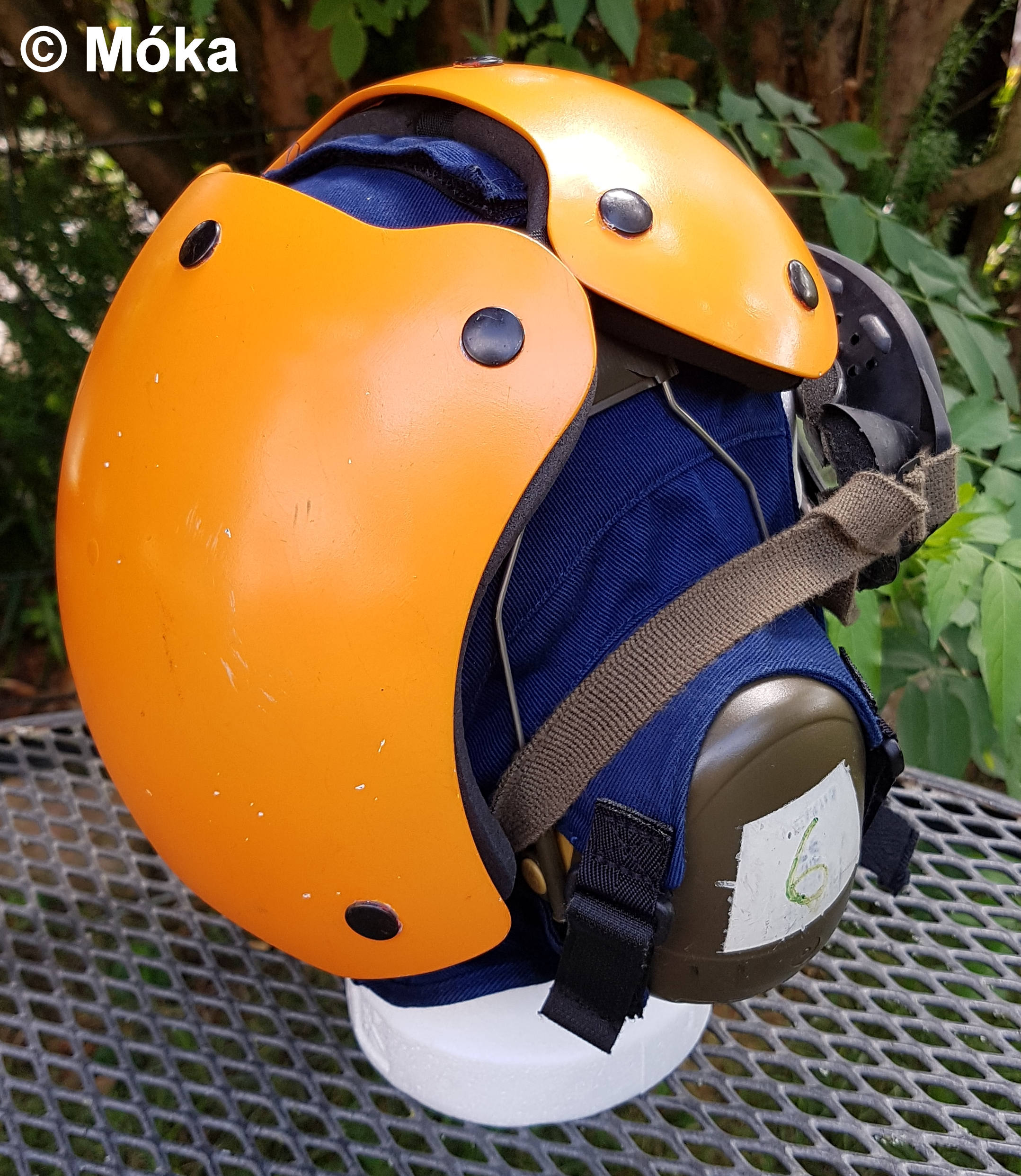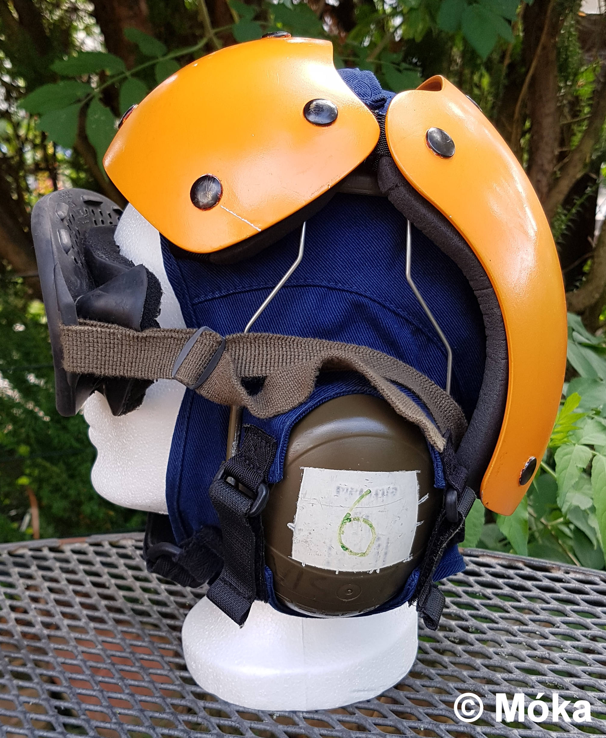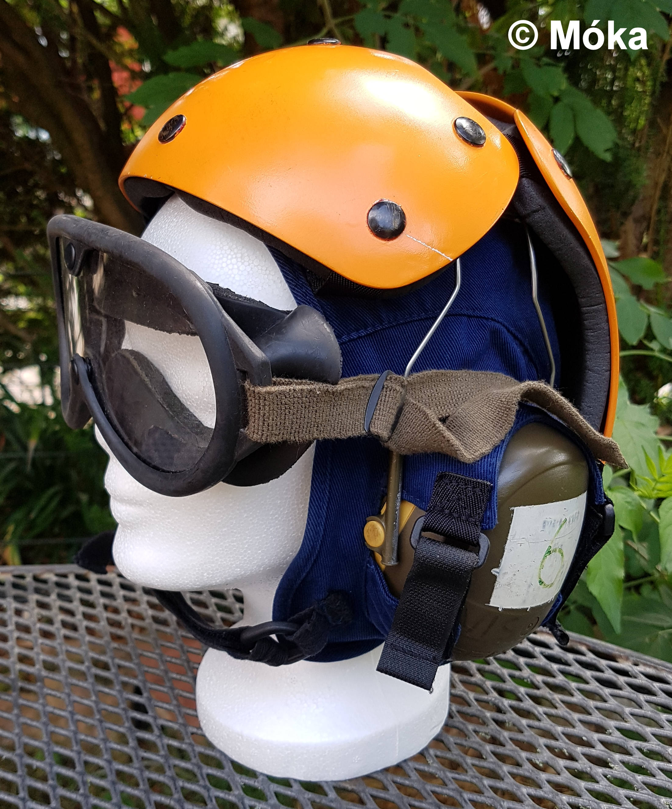Ich habe mir auf eBay einen gebrauchten „Flight Deck Helmet“ gekauft und diesen mit Hilfe von Autolack in orange und das Innenleben mit schwarzer Stofffarbe (die Farbe wurde leider nicht komplett angenommen) umgefärbt.