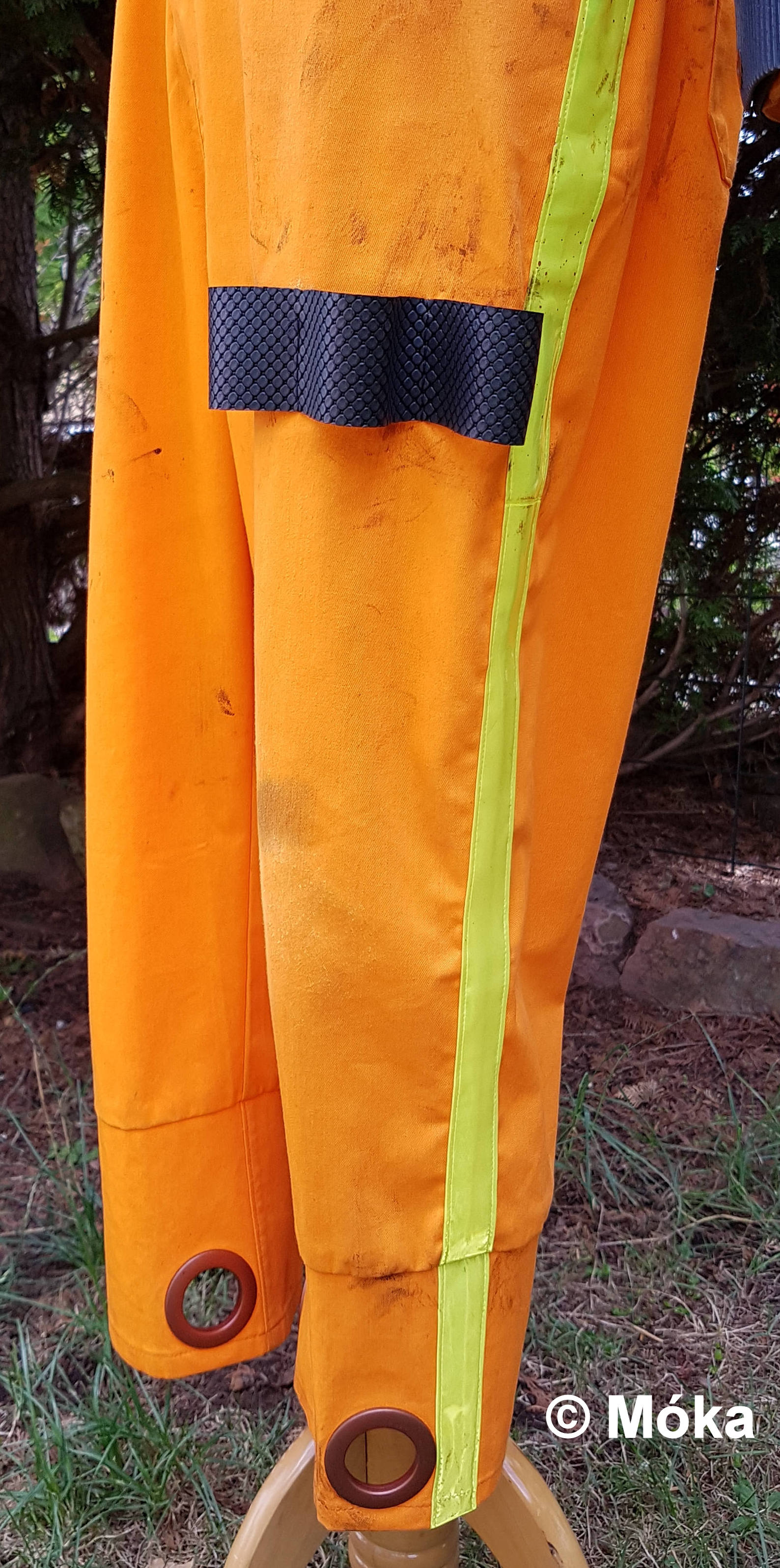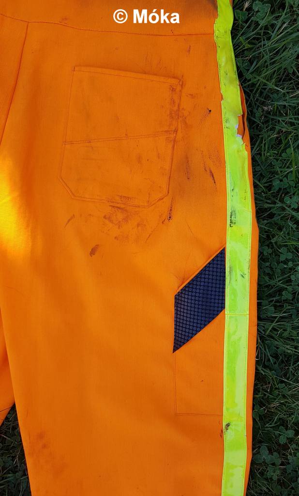 Bei den Originaloverall sind Applikationen aus der genoppten Kunststoffmatte beim Eingriff der beiden Hosentaschen aufgenäht. Da bei meinem Overall die Taschen anders verlaufen habe ich dieses hier nicht gemacht.