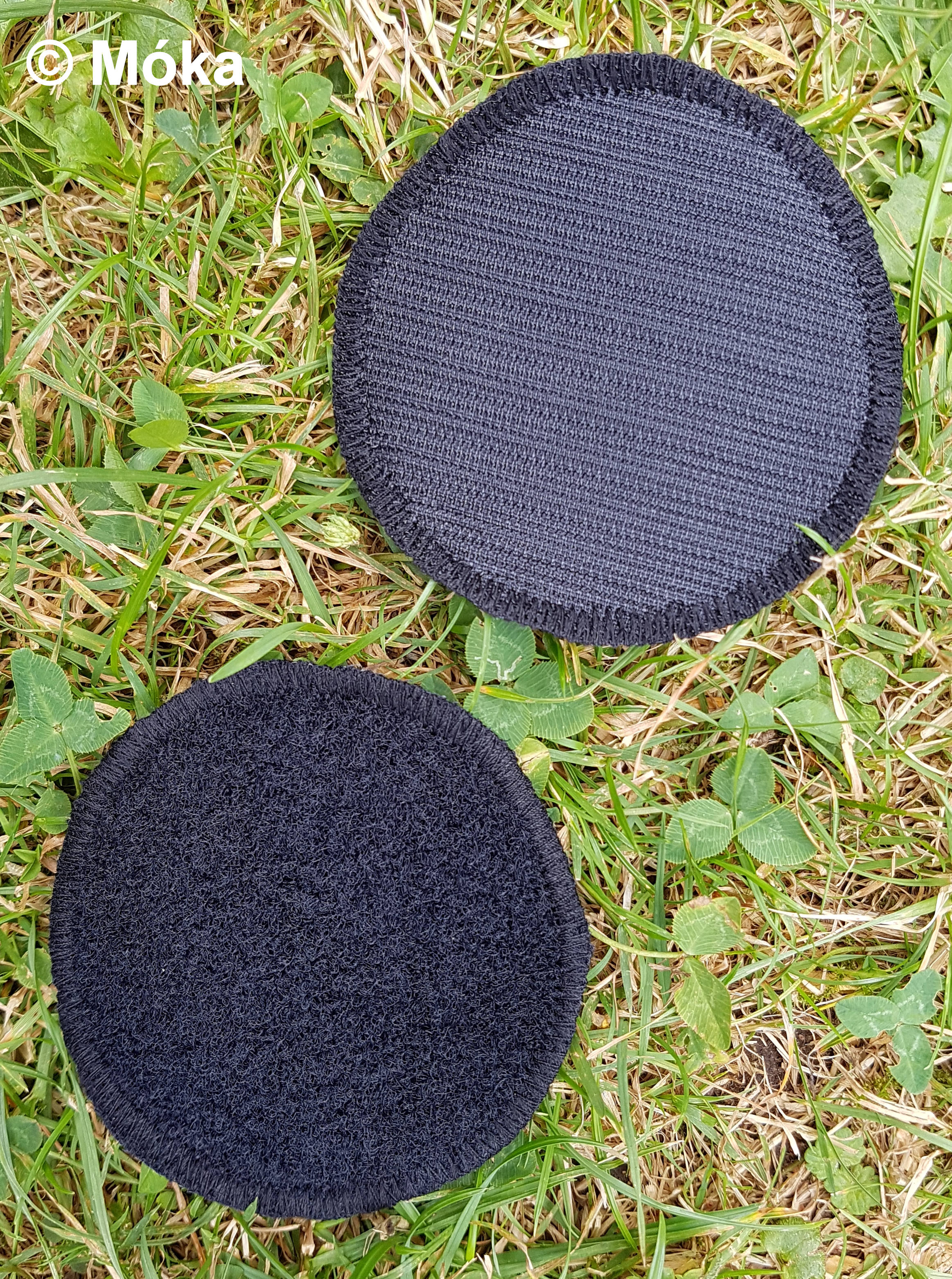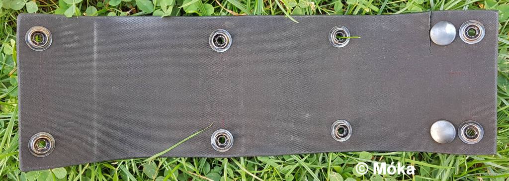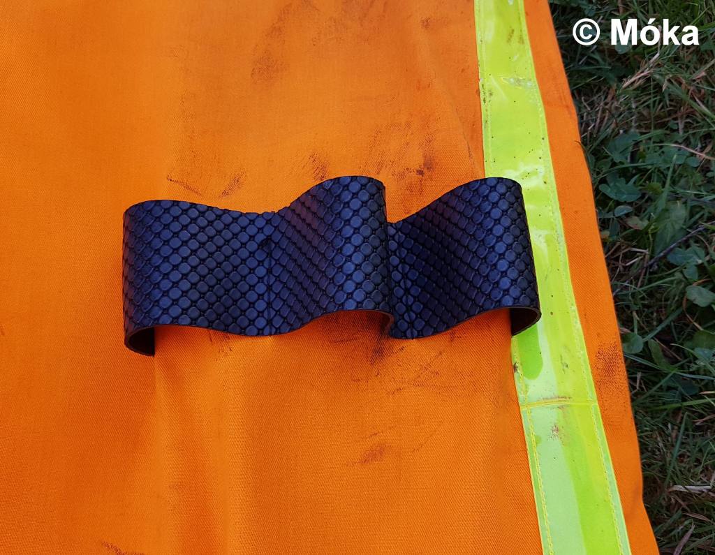 Am linken Oberschenkel vorne habe ich aus der genoppten Kunstoffmatte ein Rechteck ausgeschnitten und dieses in Schlaufen angenäht.