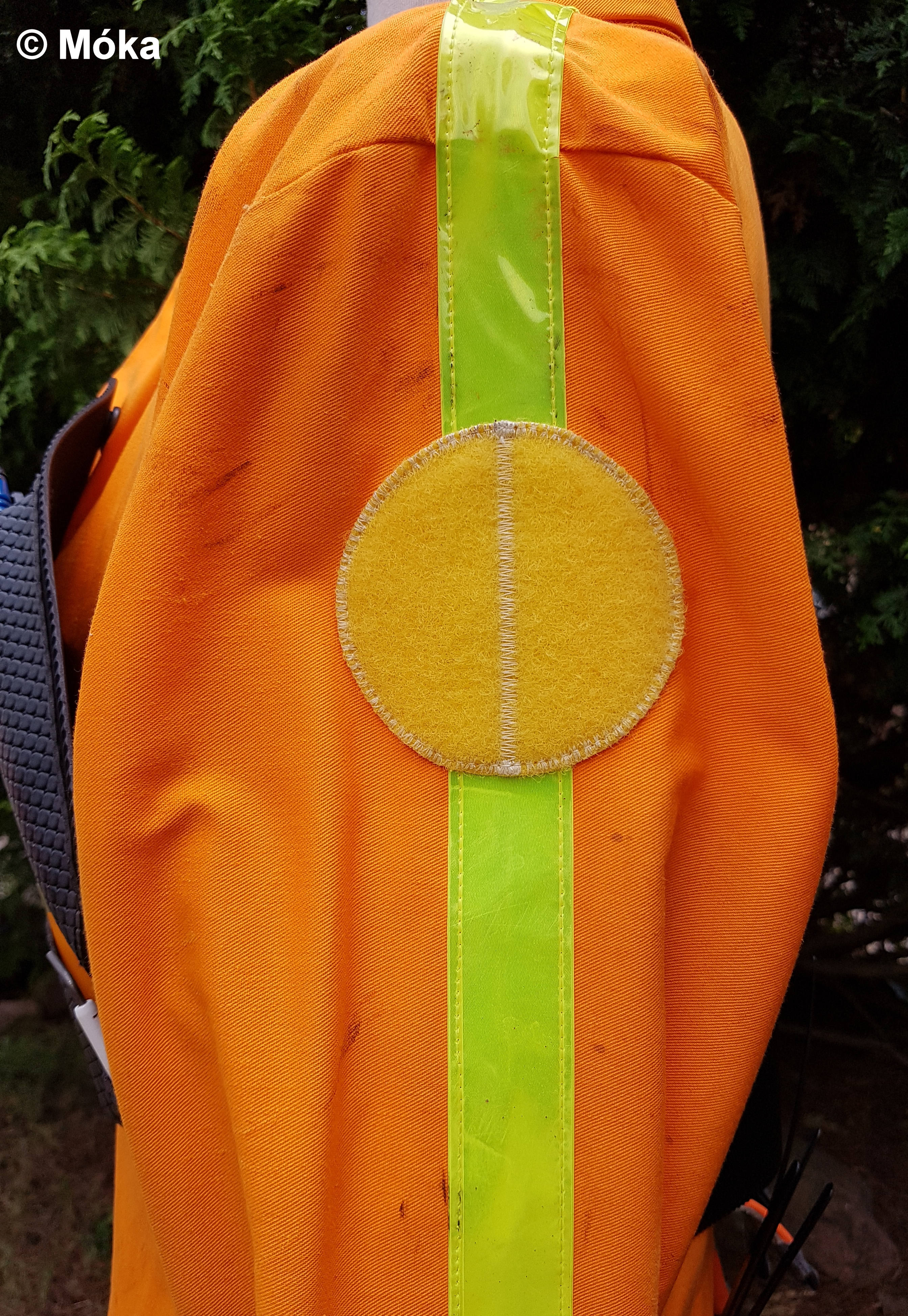 An den Seiten, Außenseite der Ärmel und im Bereich unterhalb der Schlüsselbeine wurde das gelbe Reflektorband aufgenäht.