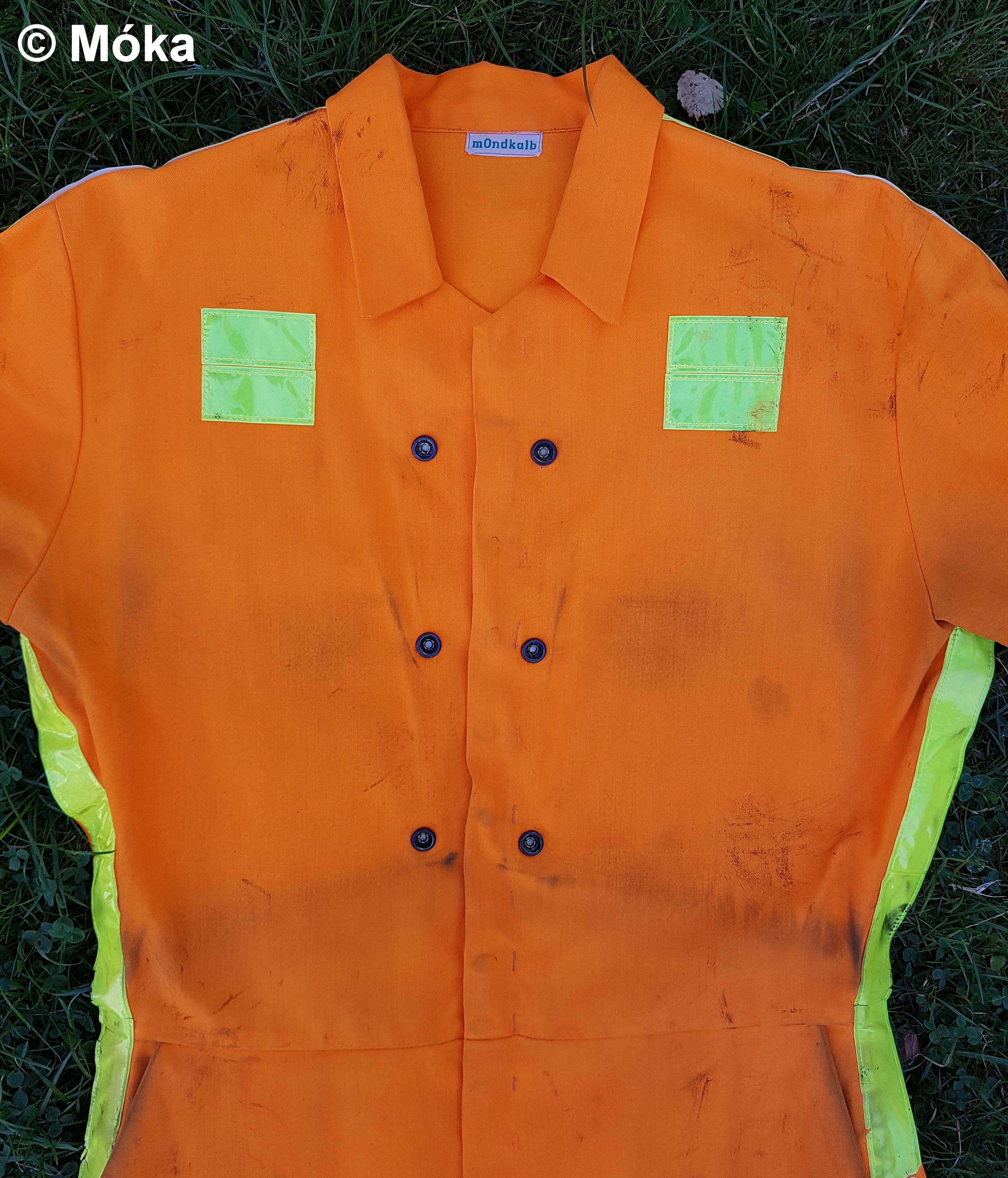 - Orangener Overall von https://www.redkap.com/ (hier darauf achten, dass das Modell verdeckte Druckknöpfe hat)