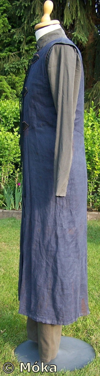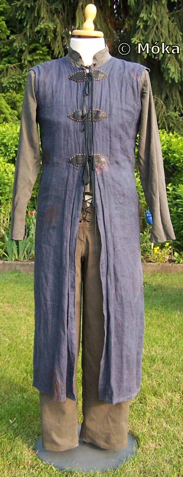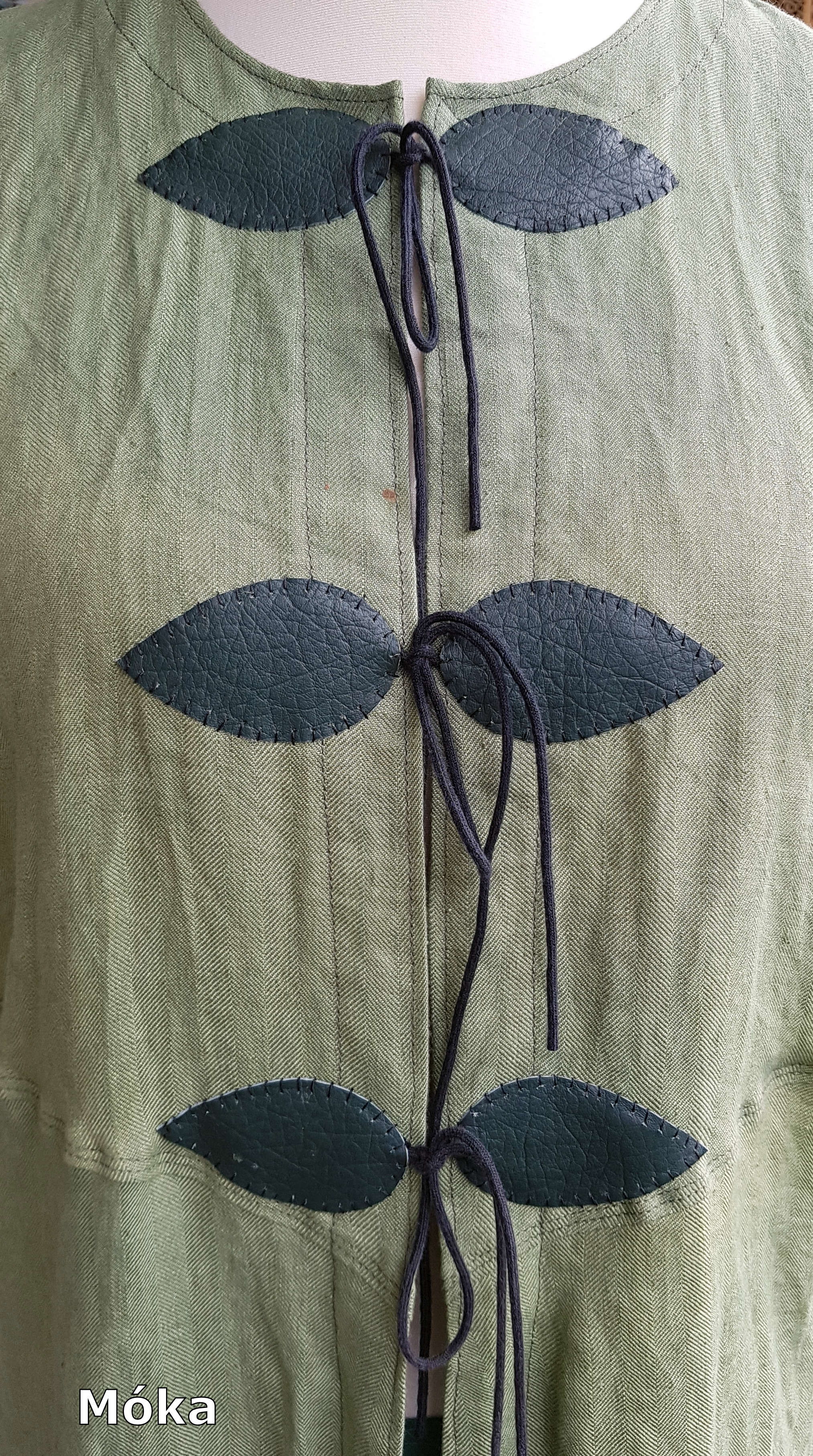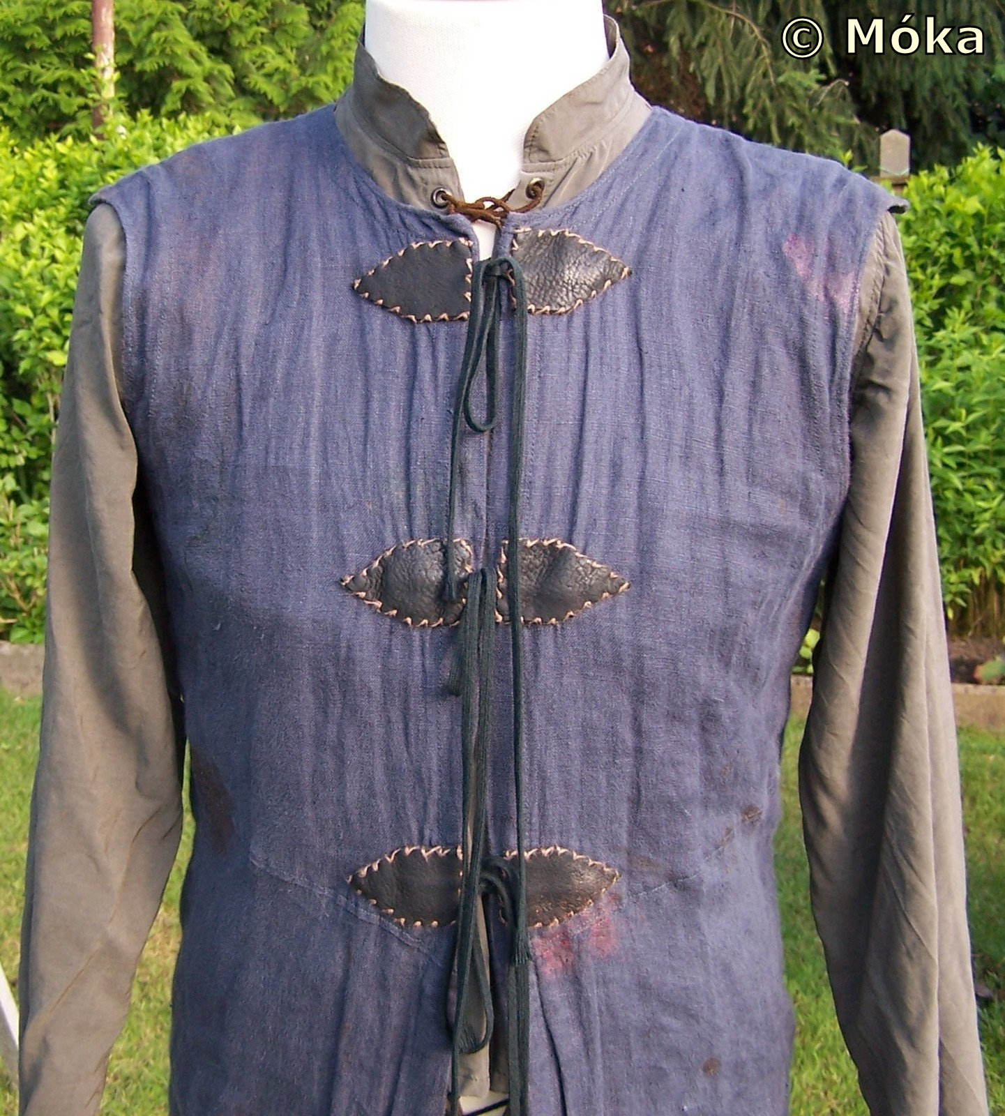 Das vordere Teil wird in der Mitte geschnürt und mit Lederapplikationen versehen.