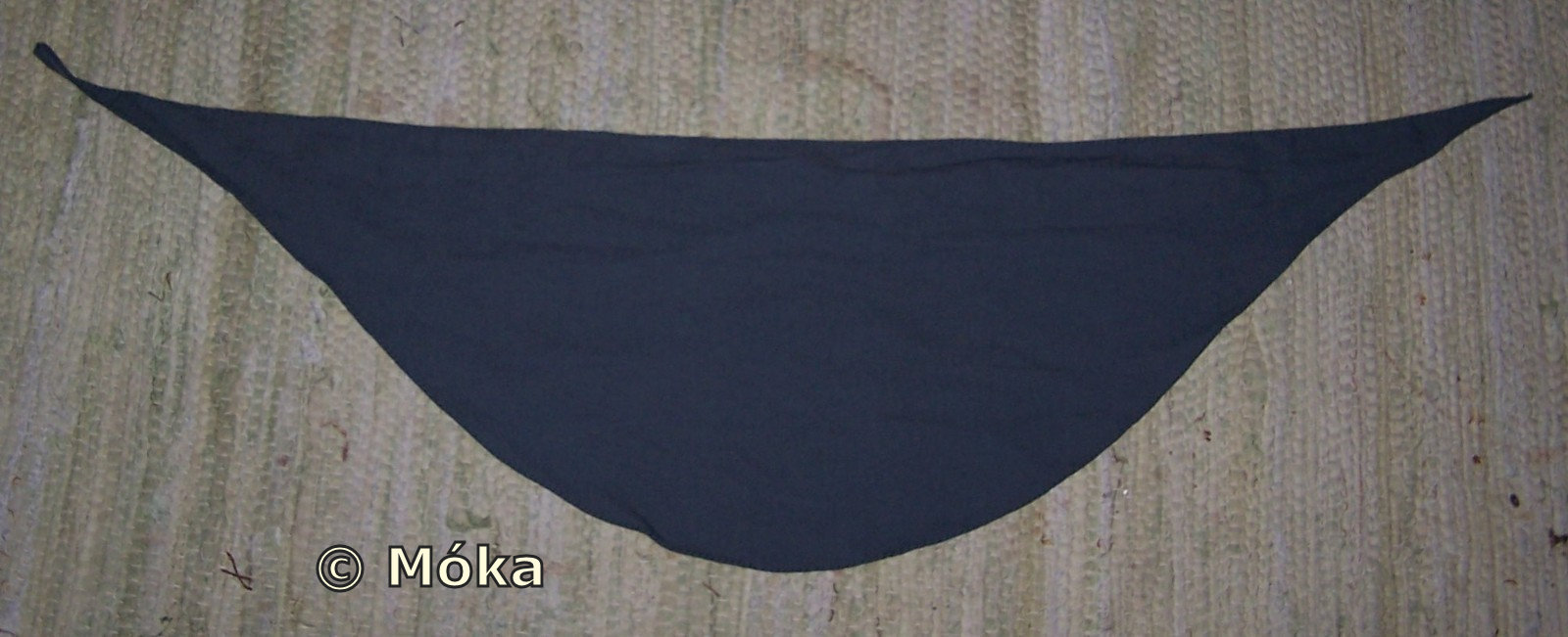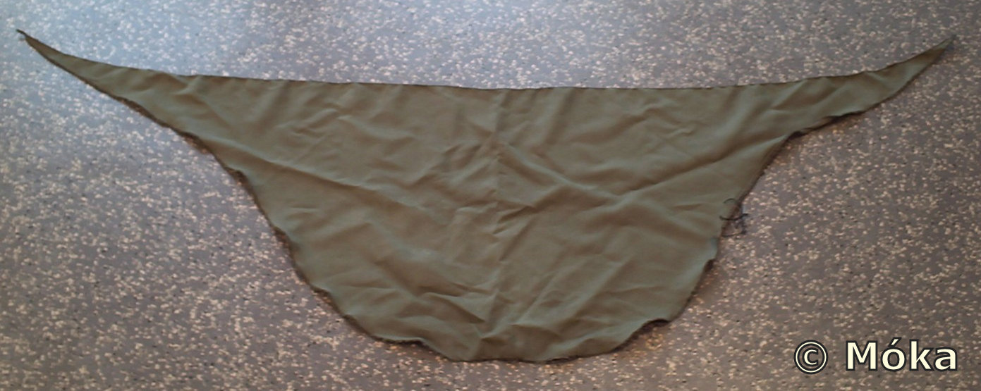 Eigentlich reicht ja ein normales Dreieckstuch. Die Form habe ich aber etwas verfremdet. Der Saum wurde von Hand umgenäht.