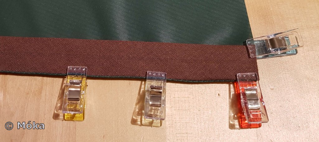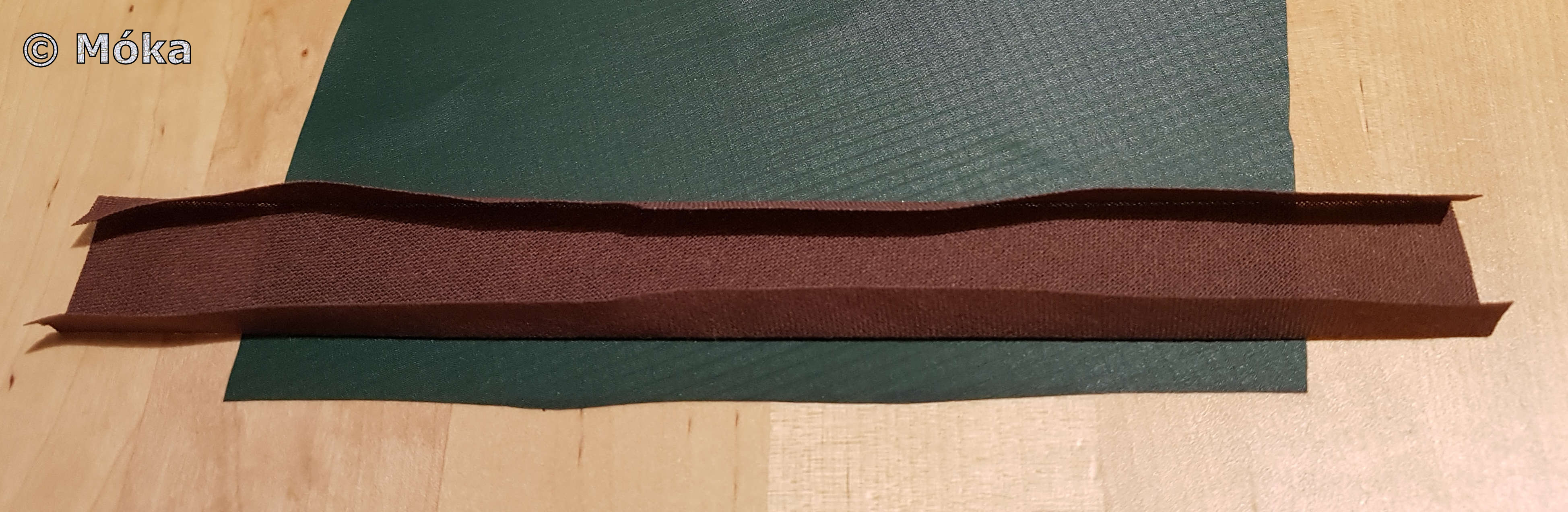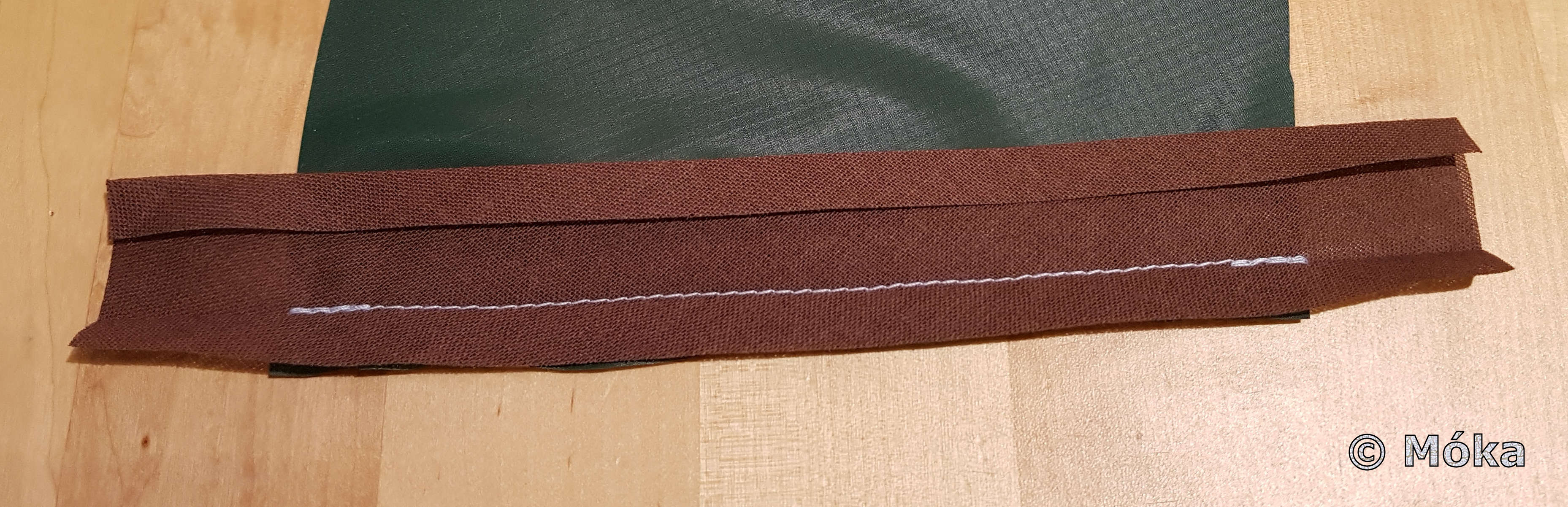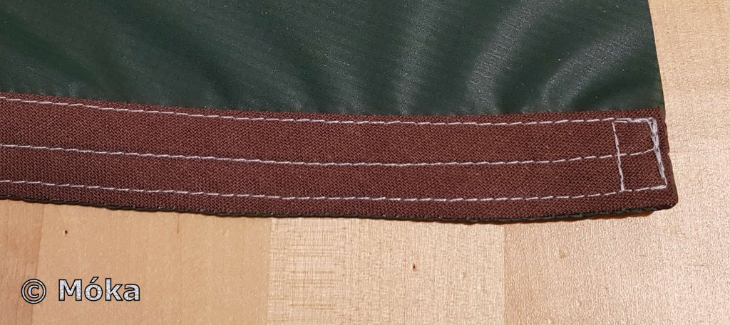 Das Vernähte wurde verstürzt und das jeweils am Ende überstehende Schrägband nach innen umgeklappt…